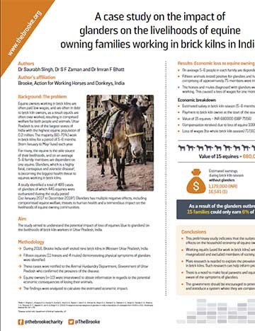 For many people, equines play a critical role in their livelihoods, and on average one equine can support five or six family members. In Uttar Pradesh, where up to 70% of the equine population works in brick kilns for six months of the year, Brooke undertook research to understand the economic impact glanders has on the livelihoods of brick kiln workers.